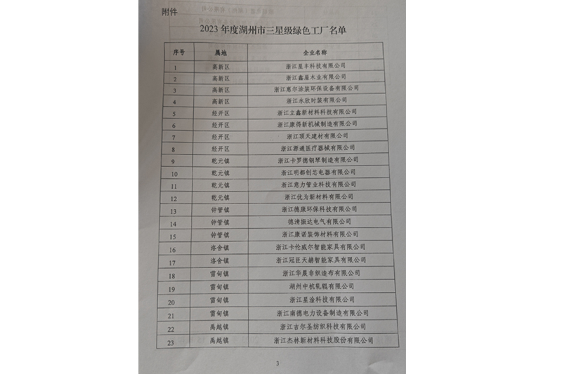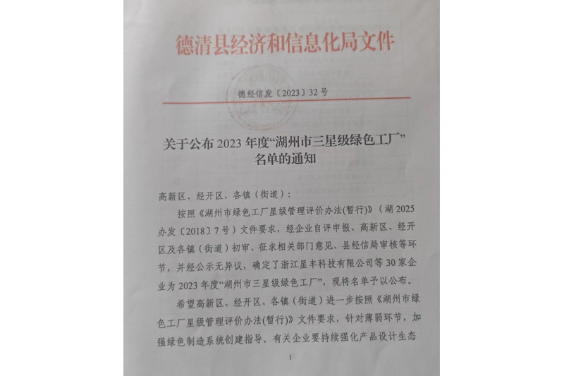 23年度獲得:“湖州市三星級綠色工廠”