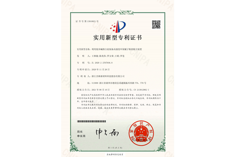 • 利用廢棄堿渣白泥制備高強度環保膩子粉的除塵裝置